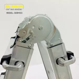 SKM403 là sự tổng hợp của thang nhôm chữ A, thang nhôm rút gọn và thang trượt. Ưu điểm lớn của loại thang này chính là có thể sử dụng giữa các bậc thang (cải tiến nhược điểm của thang chữ A).