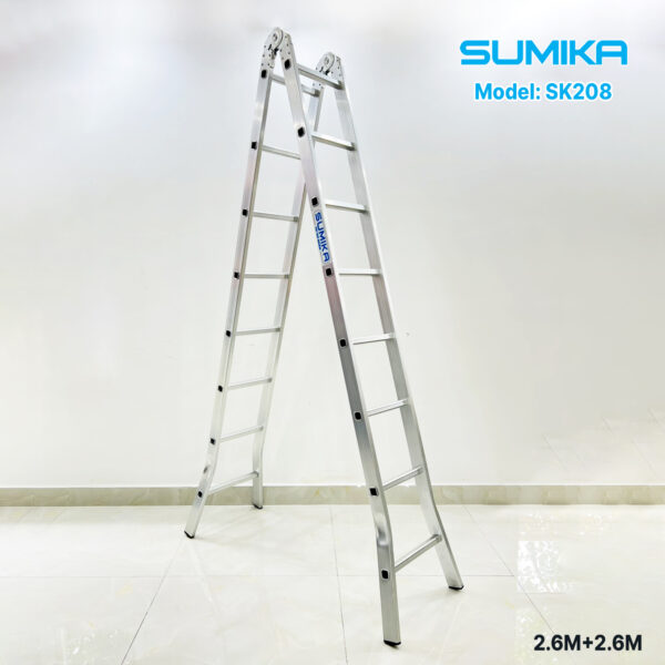 Thang nhôm xếp chữ A SUMIKA SK208 có thể chịu đựng được trọng tải 150kg bằng trọng lượng của 2 người lớn. Tuổi thọ của thang nhôm cũng cao hơn rất nhiều so với các loại thang khác trên thị trường. Chân đế được bao bọc bởi một lớp cao su bền chắc chống trơn trượt, dưới chân đế được thiết kế theo kiểu răng cưa ma sát tốt, không bị trầy xước nền nhà, mặt kính lúc thang tựa vào. Sản phẩm thuộc dòng thang gấp nên rất phù hợp với nhân viên lắp đặt thiết bị viễn thông, các công trình xây dựng, thợ sửa chữa, truyền hình cáp, trang trí nội thất dùng trong nhà và ngoài trời… Ngoài ra thang nhôm Sumika SK208 cũng có thể dùng cho gia đình sửa chữa các vật dụng trong nhà trang trí tranh ảnh, quạt trần,… cho ngôi nhà khang trang hơn.